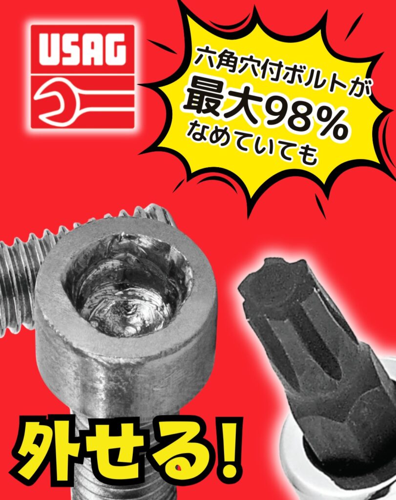 ビットの先端が特殊形状になっており、角が丸くなってしまった六角穴付きボルトにしっかり食い込んで外します!