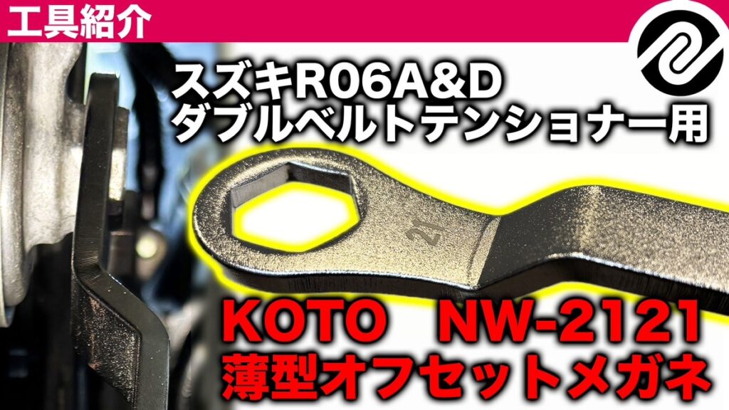 スズキR06A&Dダブルベルトテンショナー用でクランクプーリーを避ける形でオフセットしており、ロングタイプなので少ない力でテンショナーを押し縮める事が可能です!
