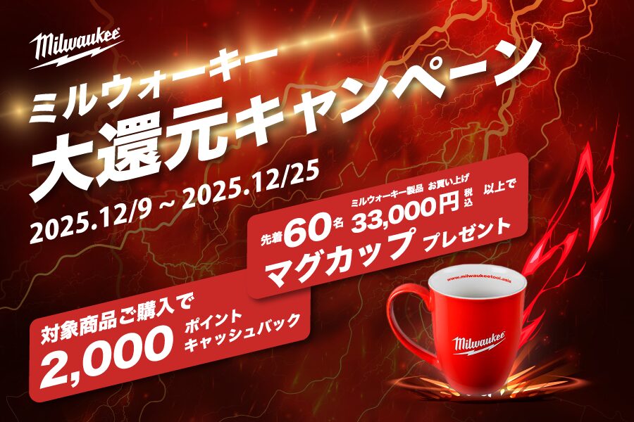 ミルウォーキー製品¥33,000(税込)以上のご購入で、大きなマグカップをプレゼント!
