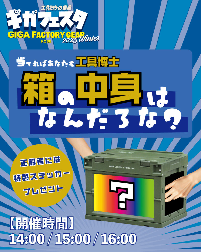その名の通り箱の中に入っている工具を手探りで当てていただくゲーム!みごと中の工具を当てていただきますと、特製ステッカーをプレゼント!