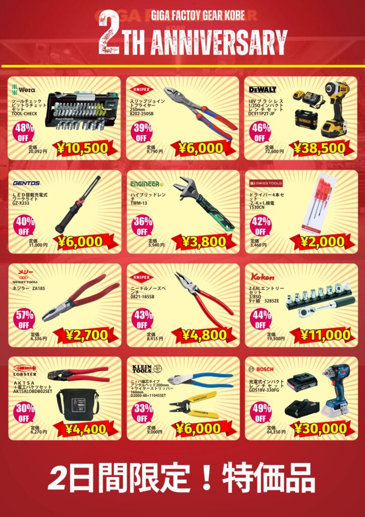 今年3月で当店GIGAファクトリーギア神戸はオープン2周年を迎えました。こちらを記念して、昨年に続き周年イベントを開催いたします!