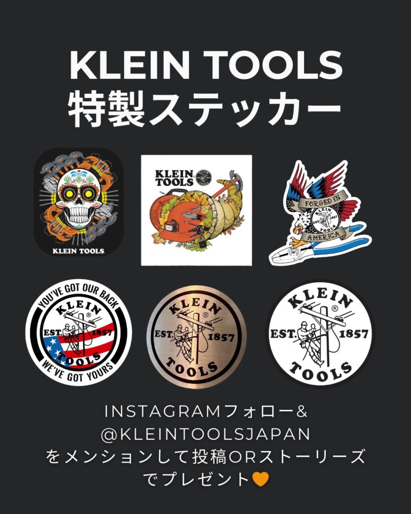 KLEIN TOOLSのインスタアカウントをフォローして投稿していただくと特製ステッカーもプレゼント!