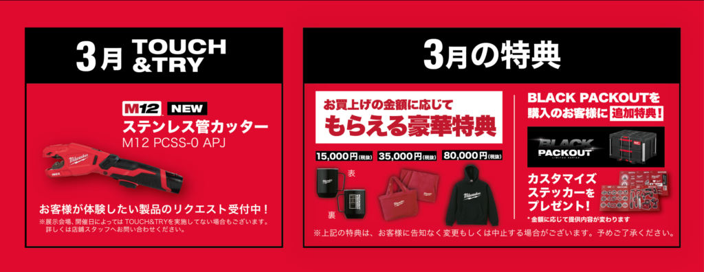 今回のイベントはミルウォーキーの実演販売イベント「RED EXPRESS」と同時開催!