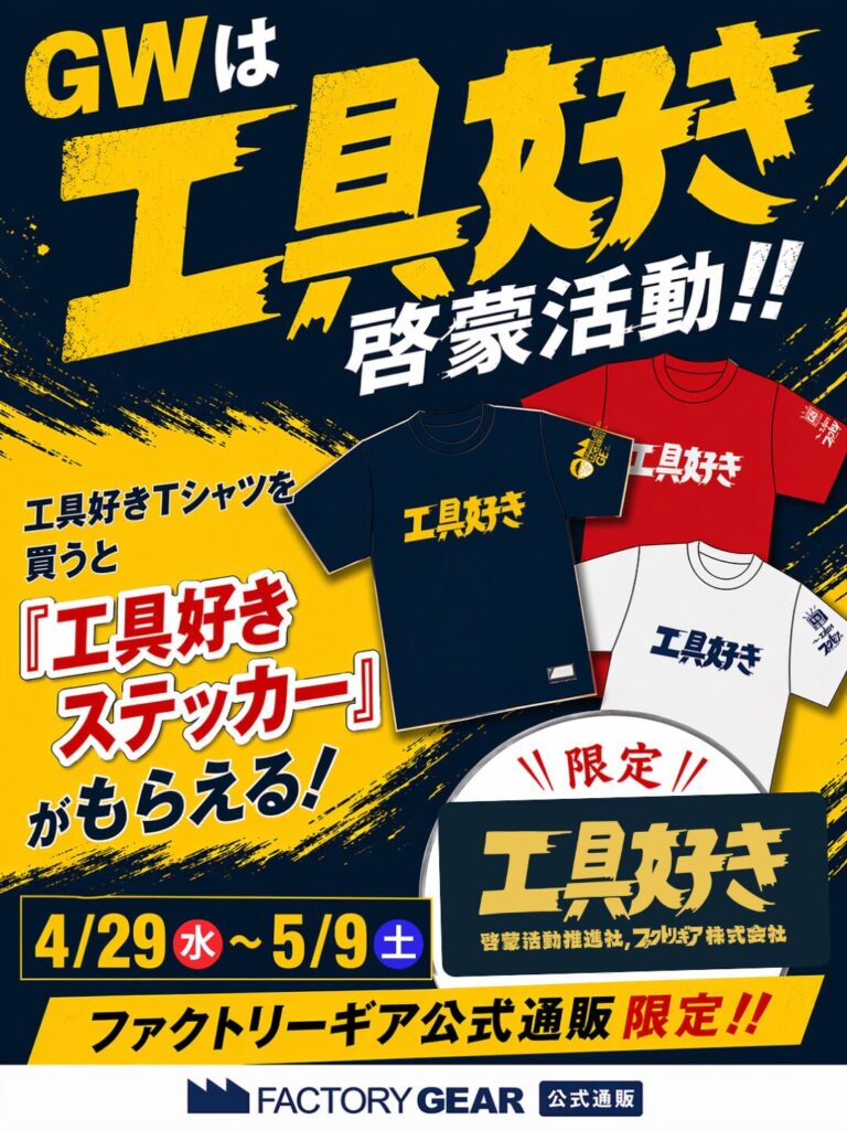 4月29日(水)~5月9日(土)までにご購入いただくと「工具好きステッカー」をプレゼント!