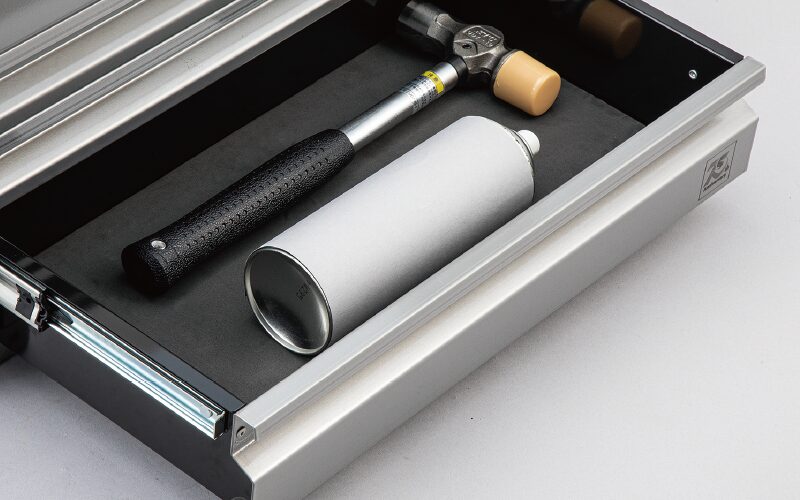 カーボン地風の特別トレイは、見た目の美しさはもちろんですが、工具がどこに収納されているかが一目で分かる為、工具の紛失防止や作業効率UPに繋がります。