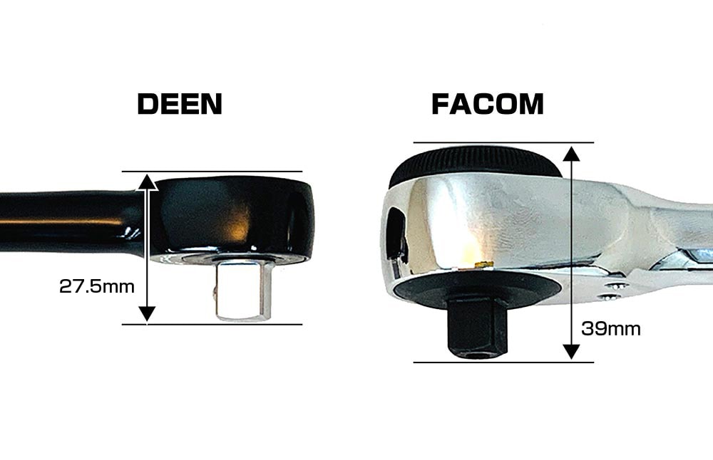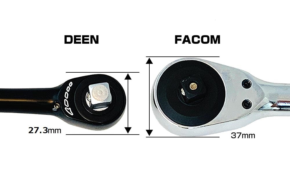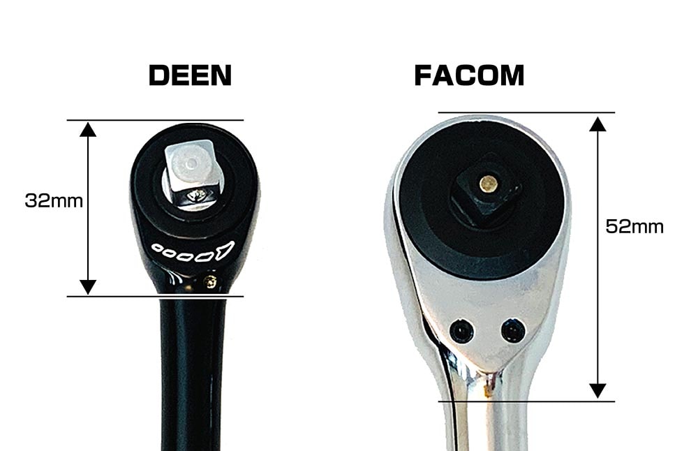 (写真左:DEEN3/8sqクイックツイストラチェット 右FACOM3/8sqロータリーラチェット)